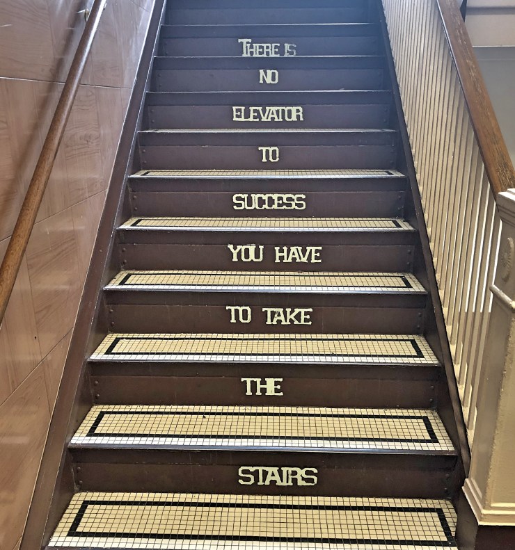A message for the students and faculty who walk the stairs at St. Catherine – St. Lucy School. (February 21, 2018 – Photo: Steven Johnson)